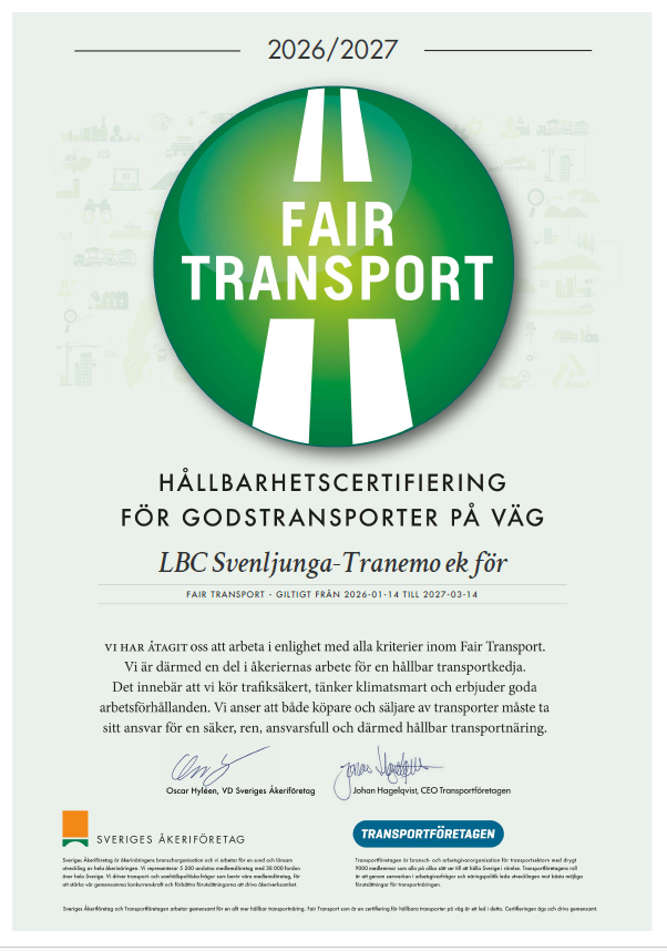 LBC Svenljunga Tranemo Ekonomisk förening, vars verksamhetsområde är att tillhandahålla sund och effektiv transportförsäljningsverksamhet vilken främjar delägarnas ekonomiska intressen och därmed förenlig verksamhet.
